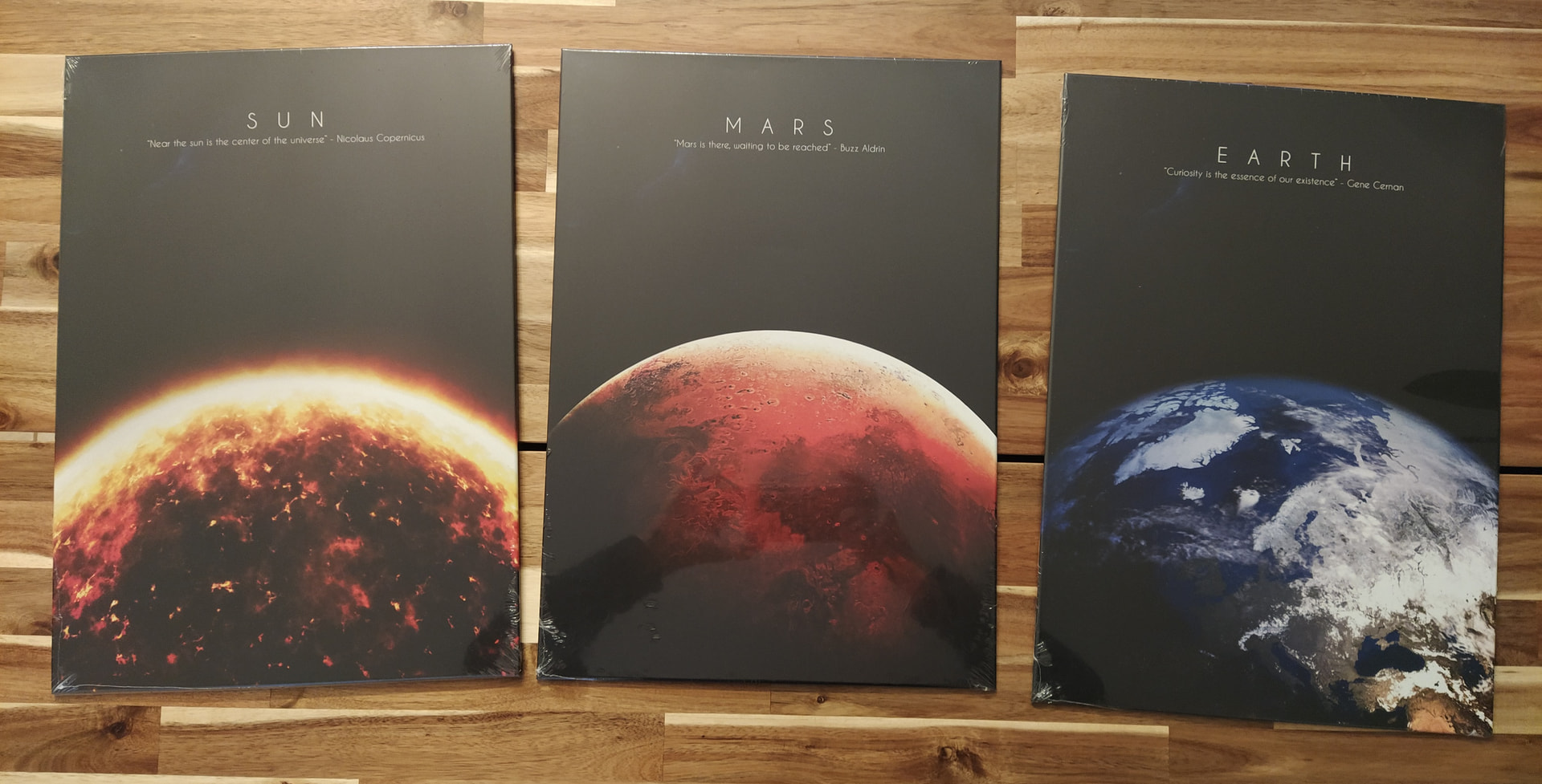 J’ai également trois autres affiches représentant le Soleil, la planète Mars et la Terre.